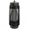 Принцип действия электрического уничтожителя насекомых (комаров, мошкары) - основан на использовании ультрафиолетового излучения в специальном диапазоне (350-400 нм). Многие летающие насекомые весьма чувствительны к данному диапазону УФ-излучения и он привлекает их. Подлетая к лампе, насекомые замыкают собой прутья металлической решетки под напряжением и погибают от электрического разряда. Погибшие насекомые падают на поддон, откуда их легко удалить.