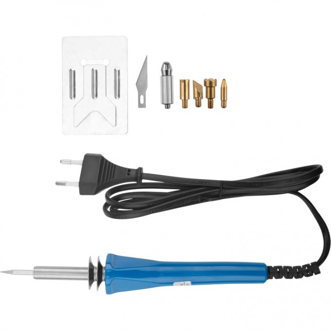 Благодаря 6 различным насадкам его можно сделать как паяльником, так и выжигателем. С помощью этих насадок можно создавать красивые картины, выжигая на дереве различные узоры, выполнять выжигание на коже или резать пластмассу.
