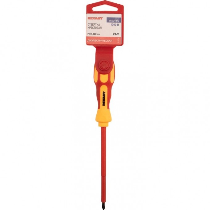 Отвертка крестовая диэлектрическая REXANT PH0х100мм, до 1000В, двухкомпонентная рукоятка 12-4716