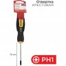 Отвертка крестовая REXANT PH1х75мм, двухкомпонентная рукоятка 12-6404