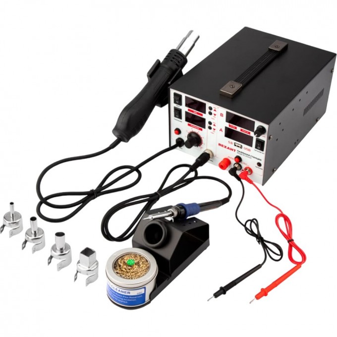 Паяльная станция REXANT R5000 (паяльник + фен + источн. питания), цифровая, 100-480°C, LED дисплей 12-0729