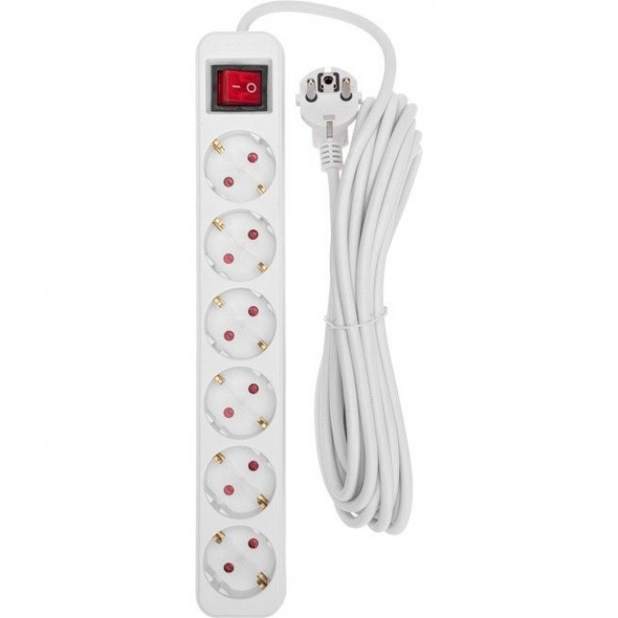 Удлинитель REXANT STANDARD 6 гнезд 5м 3х1,0мм² с выключателем белый 13-4048