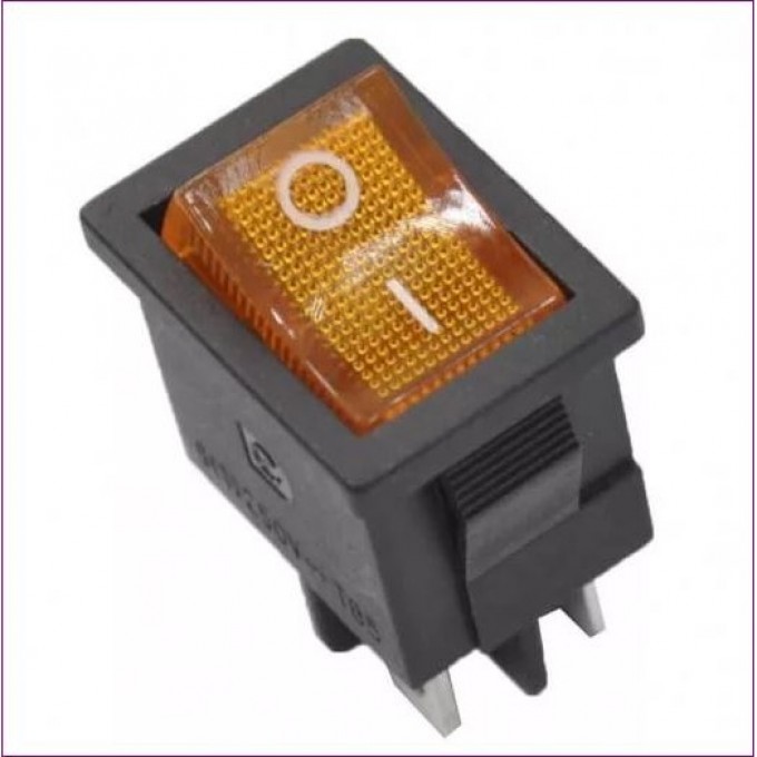 Выключатель клавишный 250V 6А (4с) ON-OFF желтый с подсветкой Mini предназначен для коммутации электрических цепей переменного тока напряжением до 250В. Клавишные (Рокерные) выключатели применяются в качестве комплектующих изделий различного электрооборудования (в сетевых фильтрах и удлинителях, аудио-оборудовании, блоках питания, электроустановках на различных производствах, автомобилях, и многих других местах). Такой клавишный переключатель имеет два положения.